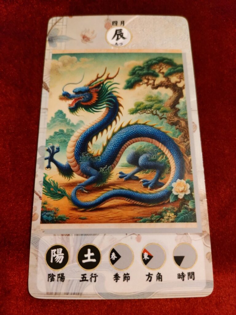 私は「命卜カード」をAIで作成したのですが、辰含め、自分のイメージに近い仕上がりにしたくて、十干十二支・キャラクターカード共に、何度も何度もプロンプトを読み込ませ画像を制作したのですが(AIは図の一部だけを変更する事が出来ない)ので、上記の画像☝以上にイメージが合う絵が作成できず、分離した状態ですが、 (おおらかに)辰の雰囲気を感じ取って頂けたらと思い、採用しました。