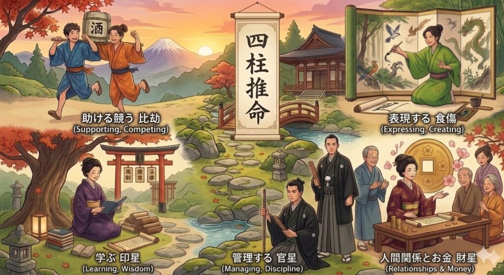 つまり通変星は、五行の関係性を人間社会に翻訳したものだともいえるのではないでしょうか?